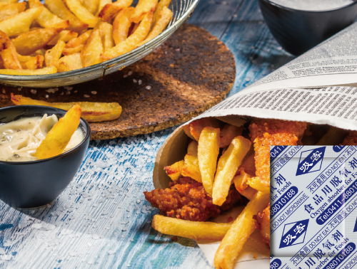 耐油型食品脫氧劑適用于油炸及油性較大食品,采用特殊防塵、防油包裝膜,有效阻止外部油脂滲入脫氧劑,保持脫氧劑透氣性及功能。